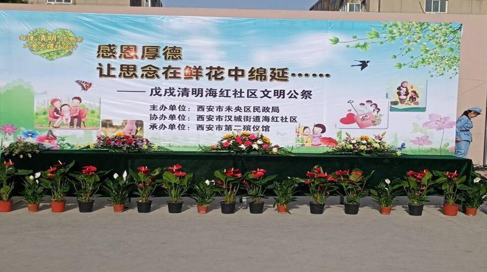海紅物業(yè)公司與海紅社區(qū)攜手西安市第二殯儀館在海紅小區(qū)文體廣場開展以“感恩厚德、讓思念在鮮花中綿延”為主題的綠色公祭活動(dòng)。未央?yún)^(qū)民政局、漢城街道辦、西安市第二殯儀館的相關(guān)領(lǐng)導(dǎo),海紅物業(yè)公司、海紅社區(qū)職工群眾600余人參加了此次公祭活動(dòng)。