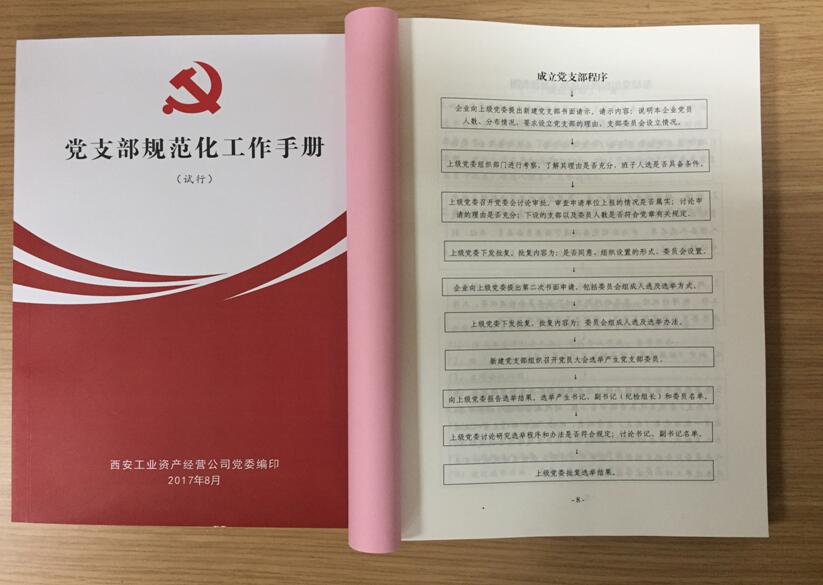 為使公司系統(tǒng)基層黨組織工作更加規(guī)范化、標(biāo)準(zhǔn)化、制度化,不斷增強基層黨組織的凝聚力和戰(zhàn)斗力,進一步推進企業(yè)的政治文明、物質(zhì)文明和精神文明建設(shè),根據(jù)《中國共產(chǎn)黨章程》及有關(guān)規(guī)定,公司黨委結(jié)合公司系統(tǒng)實際,針對權(quán)屬企業(yè)產(chǎn)業(yè)結(jié)構(gòu)不同,基層黨組織建設(shè)參差不齊、推進不一的情況,組織制訂了公司系統(tǒng)《黨支部規(guī)范化工作手冊》。
